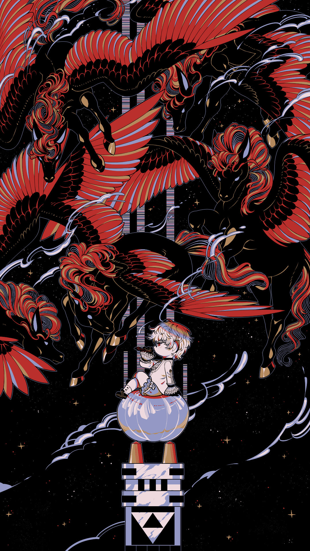 This illustration type is smaller in scale from standard illustrations, and is created using my black and white stylization. The character is drawn against a black background which is filled with many intricate props and scenes. The color palette is chosen to be very limited with only 3-4 different colors used besides black and white.The name "Chupacabra" is inspired by a special song I was listening to when I developed this style!